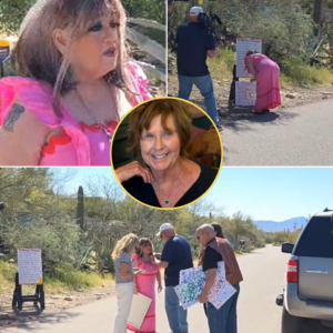 An emotional scene unfolded outside the home of missing woman Nancy Guthrie as a supporter arrived with a camera crew, photos, and signs,…