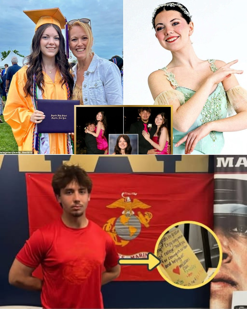 In a quiet Nesconset neighborhood where manicured lawns hide suburban secrets, a high school romance turned deadly when obsession collided with rejection. Emily Finn, an 18-year-old aspiring ballerina with dreams as bright as her pointe shoes, was gunned down in cold blood on November 26, 2025, by her ex-boyfriend Austin Lynch, who then turned the shotgun on himself in a failed suicide pact. The aspiring SUNY Oneonta freshman’s life was cut short in the entryway of Lynch’s family home, her body crumpling amid spilled lip gloss and a sequined cowboy hat, just days after she ended their three-and-a-half-year relationship. Now, as Lynch fights for his life in a hospital bed—bandaged and pleading not guilty via video feed—a crumpled notebook page clutched in his fist reveals a haunting manifesto of rage: “If I can’t have her, no one will. This ends us both.” The note, unveiled at his arraignment last week, has prosecutors vowing to bury the 18-year-old Marine hopeful under a life sentence, while friends and family mourn a girl who lit up stages and classrooms. In a case that’s gripped Long Island with its toxic mix of teen love and lethal entitlement, Emily’s story isn’t just a tragedy—it’s a stark warning about the dark side of “puppy love” gone possessive.