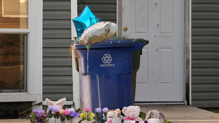 A makeshift memorial is growing on the front lawn of a home where children were killed during a mass shooting in Shreveport, La., April 20, 2026.